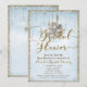 Invitaciones para la fiesta de despedida de soltera azul Castillo de cuento de hadas con brillo dorado
