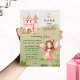 Invitación al Castillo de Hadas Caprichoso: Haz realidad los sueños de cumpleaños de tu hijo con nuestra invitación al castillo de hadas caprichoso. Este diseño encantador presenta un hermoso castillo rosa, una hada rosa y mariposas, en un paisaje hermoso. Personaliza con facilidad para incluir el nombre de tu hijo, edad y detalles de la fiesta, y aprovecha el espacio adicional en la parte posterior para una lista de deseos o texto adicional. Ideal para cualquier edad, esta invitación promete una celebración mágica. Personaliza y ordena ahora para dar vida a la historia de hadas.