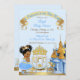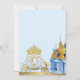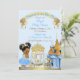 Dulce princesa con su corona y su carruaje frente a su castillo. Hecho en azul y oro. Uso para cumpleaños, duchas para bebés o invitaciones.