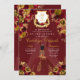Invitación de cumpleaños de Floral Rojo y Oro Elegante Quinceanera