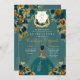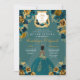 Invitación Castillo Princesa verde azulada y de Oro Quinceañe