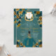 Invitación de cumpleaños a Quinceanera con floral verde azulada y dorada