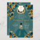 Invitación de cumpleaños a Quinceanera con floral verde azulada y dorada