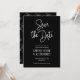 Esta tarjeta Save the Date de boda, con un divertido negro informal con escritura blanca, será la manera perfecta de dejar que tus amigos y familia planeen unirse a ti en tu día especial de boda.