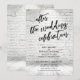 La distinción de este conjunto se debe a la fuente moderna de letra manuscrita utilizada para las frases de acento y la imagen de fondo industrial. En esta pieza, se utilizó la fuente de letra manuscrita para crear un gráfico que representa las palabras "después de la celebración de la boda". El fondo de cada lado estaba cubierto con una imagen en escala de grises que representa una pared de ladrillos desvanecida sobre pisos de madera dura. Utilice los campos de la plantilla para agregar sus datos personales y hacer que este diseño moderno y único sea suyo. Por favor, comuníquese con nosotros para cualquier solicitud especial o para obtener ayuda para personalizar. // 100 //
