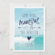 "Algo hermoso está en el horizonte", cita de la parte trasera de la invitación es un toque encantador para presentar tu Save the Date a tus invitados. Un océano azul, tema de verano para una boda en la playa. Seguir con la invitación formal en el mismo estilo. Mensaje para cualquier otro elemento que desee que coincida en este tema de diseño.