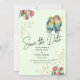 Casual script typography wedding save the date with flowers and birds on the card. Customise the card with your details.