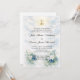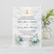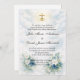 Invitación Catholic Gold Crucifix Blue and White Floral