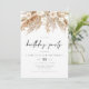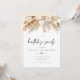 En esta invitación a la fiesta de cumpleaños se encuentran pampas acuáticas y florales beige cremosos, acompañados de un moderno tipo de letra bohemia. Esta invitación es el comienzo perfecto de tu evento en el desierto.