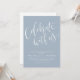 Las invitaciones modernas y sencillas incluyen la escritura con letras blancas "celebrar con nosotros" sobre fondo azul polvoriento editable en color, personalizar con los detalles de su fiesta, elegante y elegante. Ideal para la fiesta de compromiso, la fiesta de boda, el fiesta de renovación de juramento y cualquier evento de celebración. Vea todas las piezas coincidentes de la colección.