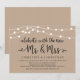 Hermosas Luces de Cadena de Granja Rústica Moderna, fuente de letra negra en fondo de Kraft marrón, Anuncio de Huida de Boda, tarjeta de invitación (Celebra con los nuevos Sr & Sra). Esto es perfecto para la recepción de su boda y la fiesta de celebración después de la boda. Agregue sus detalles en letra / letra coincidente.