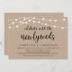 Hermosas Luces de Cadena de Granja Rústica Moderna, Fuente de letra script negra en Fondo de Kraft Marrón, Anuncio de Huida de Boda, Tarjeta de invitación (Celebra con los recién casados). Esto es perfecto para la recepción de tu boda y la fiesta de celebración después de la boda. Agrega tus detalles en la misma fuente / letra.