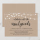 Hermosas Luces de Cadena de Granja Rústica Moderna, Fuente de letra script negra en Fondo de Kraft Marrón, Anuncio de Huida de Boda, Tarjeta de Invitación (Celebra con los recién casados). Esto es perfecto para la recepción de su boda y la fiesta de celebración después de la boda. Agregue sus detalles en la fuente / letra coincidente.