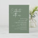 Anuncia y comparte tu felicidad para siempre con estilo con el diseño de nuestra tarjeta de invitación de celebración de boda con tema verde salvia rústico moderno (Celebra con nosotros). Es ideal para parejas que han decidido celebrar su mejor día. Con su diseño sofisticado y juguetón, esta invitación seguramente establecerá el tono para un evento inolvidable. La tarjeta de invitación presenta un tema de diseño de letra moderna y minimalista, agregando un toque de elegancia atemporal a tu celebración. Diseñado por TeeshaDerrick