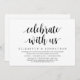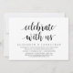 Tarjeta de invitación de boda íntima con tema de letra moderna (Celebra con nosotros). Es perfecta para su cena de boda íntima casual junto al lago, baile y fiesta.