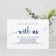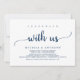 Hermosa celebración con nosotros, cena, baile y fiesta, Anuncio de boda íntima / Tarjeta de invitación, en azul marino rústico, diseño simple y minimalista. Esto es perfecto para la recepción de su boda y la fiesta de celebración después de la boda. Agregue sus detalles en letra / letra coincidente.