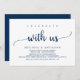 Hermoso celebra con nosotros, cena, baile y celebración de fiesta, Tarjeta de anuncio / invitación de boda íntima, en azul marino rústico, diseño simple y minimalista. Esto es perfecto para la recepción de su boda y la fiesta de celebración después de la boda. Agregue sus detalles en letra / letra coincidente.