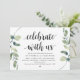 Tarjeta de invitación temática Modern Rustic Greenery Eucalyptus,, Black Script (con título de tarjeta: ¡Antes de hacerlo, cenamos!). Es perfecta para la celebración de la cena de ensayo de su boda, antes de su mejor día. Agregue sus detalles en fuente / letra negra coincidente.