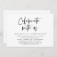 Tarjeta de invitación de escapada de boda con tema de escritura moderna informal (Celebra con nosotros). Es perfecta para su cena y baile / fiesta informal de escapada de boda.