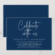 Tarjeta de invitación de boda a escondidas con tema de Azul Marino Moderno (Celebra con nosotros). Es perfecta para su recepción de boda a escondidas / fiesta de celebración post-boda. Agregue sus detalles en fuente / letra negra a juego.
