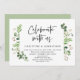 Tarjeta de invitación de boda íntima con tema de jardín de verano con hojas verdes y letra negra moderna (Celebra con nosotros). Es perfecta para la recepción de su boda íntima o la fiesta de celebración después de la boda. Agregue sus detalles en letra negra coincidente.