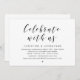 Tarjeta de invitación de boda íntima con tema de escritura negra moderna (celebra con nosotros). Es perfecta para su recepción de boda íntima / fiesta de celebración post-boda. Agregue sus detalles en fuente / letra negra coincidente.
