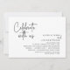 Tarjeta de invitación de elopamiento de boda con tema de escritura negra moderna (celebra con nosotros). Es perfecta para su recepción de elopamiento de boda / fiesta de celebración después de la boda. Agregue sus detalles en letra negra coincidente.
