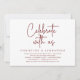 Tarjeta de invitación de elopamiento de boda con tema de escritura moderna en burgundy (celebra con nosotros). Es perfecta para la recepción de elopamiento de tu boda / fiesta de celebración después de la boda. Agrega tus detalles en fuente / letra burgundy coincidente.