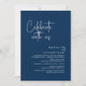 Con elegancia anuncia tu feliz eterno después con nuestra moderna recepción, cena o almuerzo, boda de la celebración de los partidos de azul marino, brunch o fiesta y tarjeta de invitación bailando, "Celebrate con nosotros". Adaptada para parejas que continúan con su historia de amor, esta invitación logra un perfecto equilibrio de sofisticación y encanto, y establece el escenario para un evento inolvidable. Con un moderno diseño de escritura contemporánea, le da un toque de gracia eternidad a su día especial. Diseñada por el talentoso Teesha Derrick, esta invitación es una expresión elegante de tu amor perdurable.
