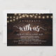 Celebra con nosotros, Anuncio de Huida de Boda / Tarjeta de Invitación, en Madera de Granja Rústica, diseño de Luces de Cadena. Esto es perfecto para la recepción de su boda y la fiesta de celebración después de la boda. Agrega tus detalles en la fuente / letra coincidente. #TeeshaDerrick