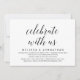 Hermoso anuncio de huida de novios con elegante letra negra, tarjeta de invitación (Celebra con nosotros). Esto es perfecto para la recepción de su boda y la fiesta de celebración después de la boda. Agregue sus detalles en la misma fuente / letra.