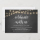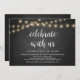 Hermosa Celebración con nosotros, Anuncio de Huida de Boda / Tarjeta de Invitación de Fiesta, con Luces de Cadena de Granja Rústica Moderna, tema pizarra. Esto es perfecto para la recepción de su boda y la fiesta de celebración después de la boda. Agregue sus detalles en la fuente / letra coincidente.