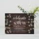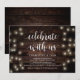 Hermosa Celebración con nosotros, Anuncio de Huida de Boda / Tarjeta de Invitación a la Fiesta, con Luces de Cadena de Granja Rústica Moderna, tema de papel marrón de madera. Esto es perfecto para la recepción de su boda y la fiesta de celebración después de la boda. Agregue sus detalles en la fuente / letra coincidente.