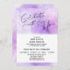 Ya te has casado y ahora es hora de la celebración más grande. Esta tarjeta elegante podría ser la solución ideal para ti. El fondo estaba cubierto con un sutil lavado de acuarela púrpura y blanca. Con una fuente de caligrafía moderna adornada con corazones, el encabezado dice "Celebra con nosotros". Utiliza los campos de la plantilla para agregar tus datos personales. // 139 //
