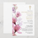 Esta elegante invitación cristiana floral rosa para celebrar la vida y el recuerdo puede ser personalizada con su información en tipografía clásica. Diseñada por Thisisnotme©