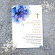 Esta elegante invitación cristiana de celebración de vida y recuerdo floral azul acuarela puede ser personalizada con su información en tipografía moderna. Diseñada por Thisisnotme©