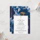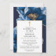 Esta elegante invitación cristiana de celebración de la vida y recuerdo floral azul marino y dorado puede ser personalizada con su información en tipografía clásica. Diseñado por Thisisnotme©