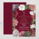 Una elegante invitación de recuerdo de celebración cristiana de la vida personalizada con hermosas flores de rosas y un marco dorado sobre un fondo borgoña. Diseñado por Thisisnotme©