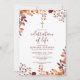 Esta invitación moderna y elegante de celebración de la vida floral de otoño en acuarela borgoña puede ser personalizada con su información en tipografía elegante y foto en el reverso. Diseñado por Thisisnotme©