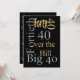 Invitaciones a fiestas de "40º cumpleaños" con plantillas de texto de personalizable completo.DISEÑO: Una moda, elegante, elegante y elegante diseño de numerales y palabras dorados y plateados se sitúa sobre un fondo negro, que puede ser cambiado a cualquier color de su elección personal. El diseño incorpora lo siguiente: "Big 40"; "Sobre la colina"; "40º"; "cuarenta" y varios tamaños de 40 - para formar una sofisticada y atractiva tapa. Hay un borde negro a la izquierda para el nombre del niño de cumpleaños o chicas y el mismo diseño se repite en el borde izquierdo, adyacente a las plantillas.PERSONALÍZALO: Cambie las plantillas para que reflejen cualquier texto de su elección personal y siéntase libre de agregar, eliminar o mover las plantillas; para cambiar el color / tamaño y estilo de la fuente y para cambiar el color de fondo. INTERVALO DE COINCIDENCIA: Para una amplia gama de productos "mix and match" en este diseño original, visite nuestra página de inicio. IDEAL PARA: Fiestas de 40 años; 40 invitaciones sorpresa a amigos y familiares; 40 años de reuniones/actos y reuniones o para cualquier establecimiento que pueda celebrar su cuadragésimo año de actividad. DERECHOS DE AUTOR: El diseño tiene derechos de autor para Robin Wood - Todos los derechos reservados. CONSERVAR DIRECCIÓN:http://www.zazzle.com/mensgifts*