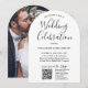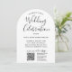 Invite a familiares y amigos a una celebración de boda simple y elegante con invitaciones arqueadas con código QR únicas y elegantes. La foto y todo el texto de esta plantilla son fáciles de personalizar para incluir cualquier detalle que desee. El diseño minimalista moderno en blanco y negro presenta una foto de la pareja comprometida o recién casada, caligrafía de letra manuscrita trendy y tipografía de estilo máquina de escribir chic. Al escanear el código QR con sus teléfonos, los invitados son enviados directamente al sitio web de la boda para responder a la invitación. Un proceso de RSVP en línea reduce la posibilidad de que las tarjetas se pierdan en el correo. También es más versátil, ya que puede solicitar información más detallada, como opciones de comida, alergias alimentarias y solicitudes de canciones. Toda la información de respuesta se puede personalizar o eliminar. Esta invitación es una forma elegante de pedir a los invitados de la boda que respondan amablemente a la celebración de su próximo día especial. ¡Felicidades a la novia y al novio!