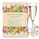 Un vibrante ramo de flores de primavera para la celebración de su fuga. Con un encanto de cottage y colores vibrantes para reflejar su propia alegría y felicidad por sus recientes nupcias. La parte trasera de la tarjeta habla sobre ustedes, cuando se casaron y cuán felices están ambos y su información sobre dónde sus amigos y seres queridos pueden celebrar con ustedes. Los detalles son fácilmente personalizables para que incluyan su propia información según sea necesario.