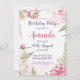 Celebra un día especial con este elegante diseño floral! Un delicado patrón de flores rosas y hojas verdes en suaves tonos pastel crea un tono cálido para una fiesta de cumpleaños. Añade tu nombre y detalles del evento para crear un bello keepsake. ¡Es una forma perfecta de invitar a los huéspedes a un día de risas y alegría!