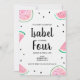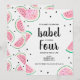 Invite a tus invitados con estilo con esta dulce y colorida invitación de cumpleaños de sandía. Perfecta para una fiesta de cumpleaños de verano o cualquier celebración temática de frutas, este divertido diseño funciona hermosamente para cualquier edad.