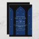 Esta elegante invitación a Eid al-Fitr ofrece una escena nocturna con un cielo azul marino y estrellas blancas que se pueden ver a través de ventanas decorativas. Personalice el texto blanco y dorado con los detalles de su evento para una elegante invitación de Eid para enviar a sus seres queridos.