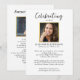 Honre a su ser querido con esta hermosa invitación de celebración de la vida. El frente presenta una foto enmarcada por un borde dorado falso y todos los detalles de su celebración. La parte trasera ofrece espacio para otra foto y poema o escritura (o eliminar). La plantilla es muy fácil de usar y cambiar - cree una invitación que sea única, clásica y será apreciada por siempre.