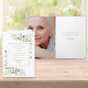 Una elegante invitación doblada personalizada de recuerdo de celebración de la vida con vegetación de acuarela. Diseñada por Thisisnotme©