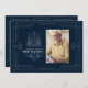 Un elegante y sofisticado diseño Art Deco azul oscuro y blanco celebra la vida de un hombre importante en tu vida. Muestra su fotografía en el frente a la derecha. Dos águilas de estilo art déco definen la decoración que rodea su nombre. La invitación tiene el mismo marco Art Deco y ofrece más detalles del servicio Celebration of Life. No dudes en enviarme un mensaje si necesitas elementos coincidentes. Soy Nelda y me encantaría ayudar.