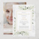 Una invitación de recuerdo de foto de celebración de la vida con acuarela personalizada de mármol elegante moderno y hojas de vegetación. Diseñada por Thisisnotme©