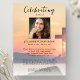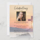Honra a tu ser querido con esta hermosa celebración de la invitación a la vida. El frente presenta una escena oceánica con una cruz a un lado, tu foto enmarcada por una falsa frontera dorada y detalles de tu celebración. La parte trasera ofrece espacio para otra foto y otro poema o escritura (o borrar). La plantilla es muy fácil de usar y cambiar - crear una invitación única, clásica y que será apreciada para siempre.